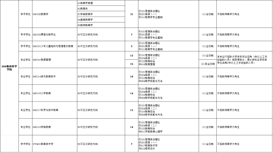 学术型研究生招生方向有8个,分别为教育学原理、高等教育学、教育史、学前教育学、教师教育学、教育技术学、课程与教学论、少年儿童组织与思想意识教育;教育硕士研究生招生领域有5个,分别为教育管理、现代教育技术、小学教育、学前教育、科学与技术教育。2026年总共计划招生130人左右。