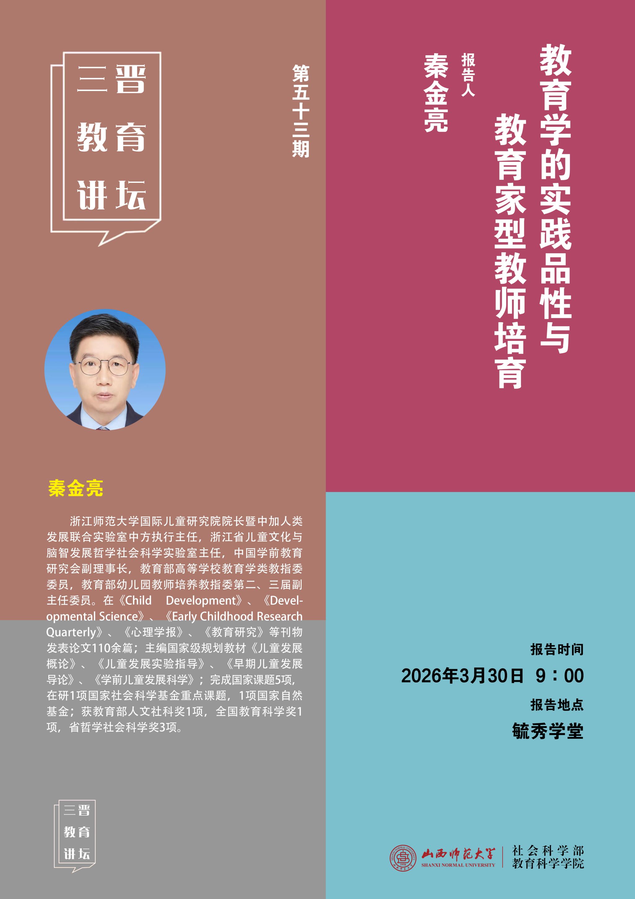 【预告】浙江师范大学教授秦金亮应邀来 成人论坛 作学术报告