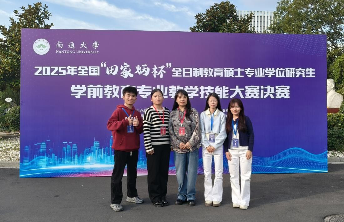 首届招收的学前教育专硕学子参加比赛并获得了可喜成绩。其中,黄伟佳荣获全国二等奖,段云弘荣获全国三等奖,戴金秀荣获优秀教学设计奖,范瑞芝老师获优秀指导教师奖。