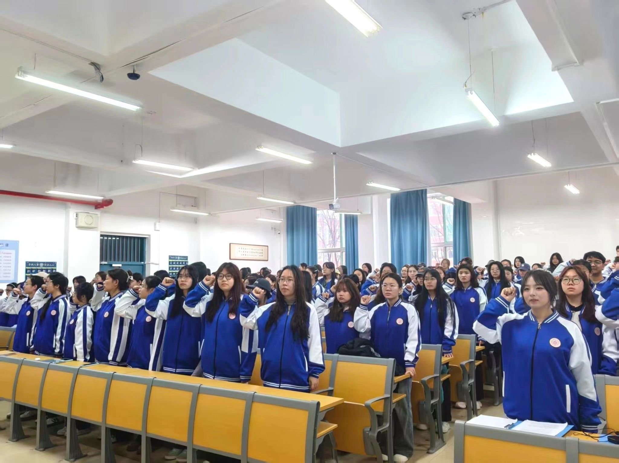启动仪式现场,师生共同观看 成人论坛