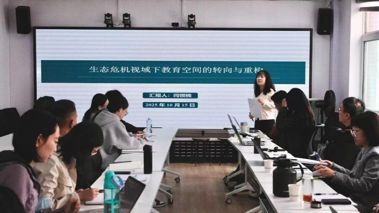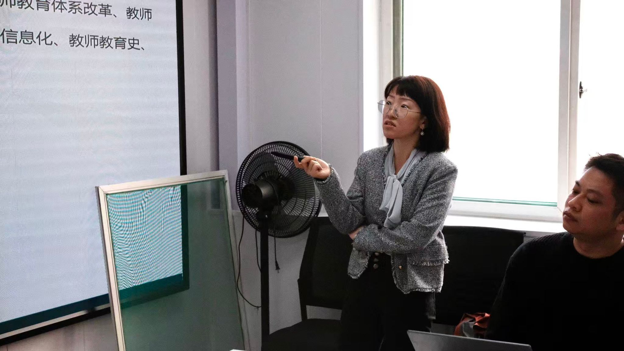 此次学术沙龙分为报告分享、学术指导、总结点评三个环节。在报告分享环节,赵国栋博士、时思博士、闫领楠博士分别作了题为《乡村教师缘何疏离数字技术》《学校动机氛围对中小学教师知识行为的影响机制》《生态危机视域下教育空间的转向与重构》的专题分享。在学术指导环节,张海燕老师详细介绍了《教师教育研究》期刊的基本情况、主题类型和选题分析,重点介绍了期刊的审稿要点,并就“高质量学术论文的基本特征”“如何写好一篇高质量学术论文”等与老师们做了交流分享。针对三位博士的研究,张海燕老师从主题选择、研究范式、参考文献和后续修改发表流程等角度提出了建设性意见和建议。最后,赵英院长进行了总结点评,并对三位博士的研究和汇报提出了针对性的优化意见。
