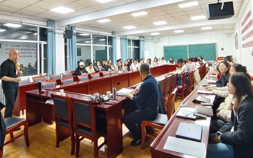 在近三个小时的报告中,宇保贵老师以深厚的理论素养和丰富的教学案例,系统阐释了核心素养视域下语文教学的本质内涵与发展方向。他指出,语文教学不应仅停留于知识传递和技能训练,而应着眼于学生综合素养的全面发展,回归“立人”的教育本真。在此基础上,他重点围绕“语言、思维、审美、文化”四个维度,层层剖析了语文核心素养的构成要素及其在教学实践中的具体落点。此外,宇老师还聚焦于课堂优化路径,从“以学生为中心”的教学理念出发,结合大量课例,分享了如何激发学生主动性。同时,他也强调了教师文本细读能力的重要性。